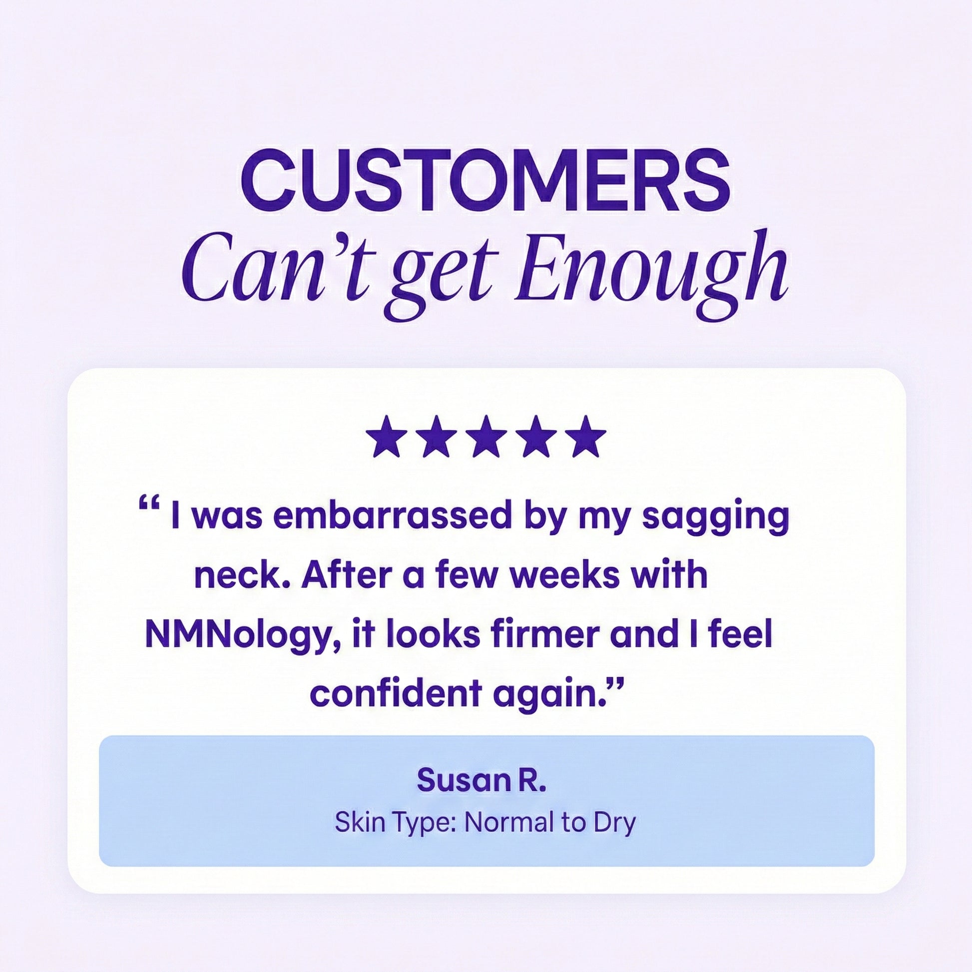 That’s where NMN comes in. By supporting healthy NAD+ levels, it helps fuel skin renewal at the cellular level—promoting a brighter glow, smoother texture, and a more youthful-looking appearance over time.